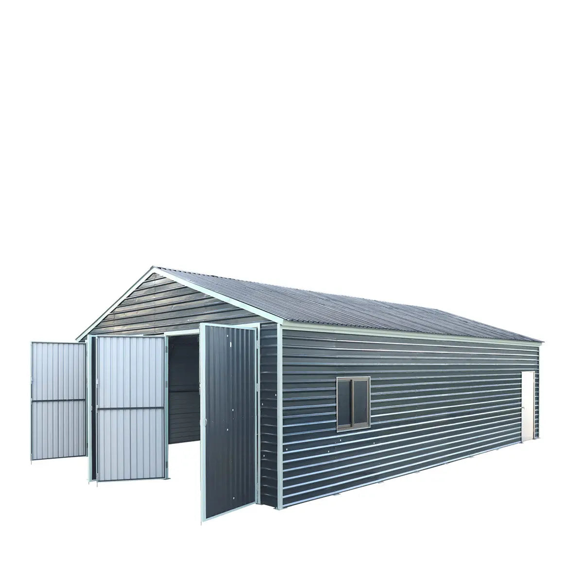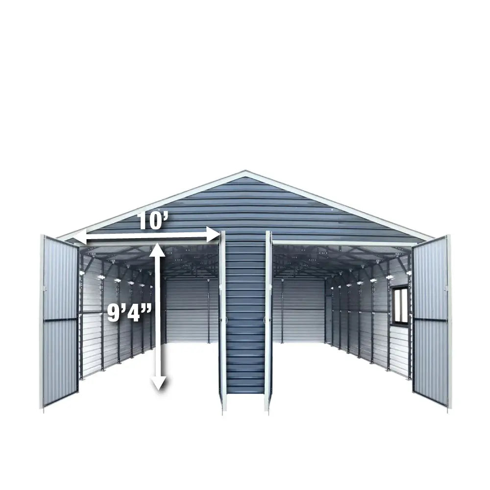 The TMG-MS2640 Metal Garage Shed with Double Front Doors is a heavy-duty, spacious, robust steel structure that can be used as an outdoor storage facility. Fully enclosed for year-round protection of your boat, RV, pickup, off-road vehicles and farm equipment.