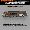 This spacious 30' long office features a 150 sq-ft staff working area and a separate 35 sq-ft manager's office, fostering a seamless balance between collaborative endeavors and focused productivity. Furnished with a luxurious leather chair and four ergonomic sit-to-stand office chairs (all included), which make the space functional and ready for comfort from the moment it arrives.