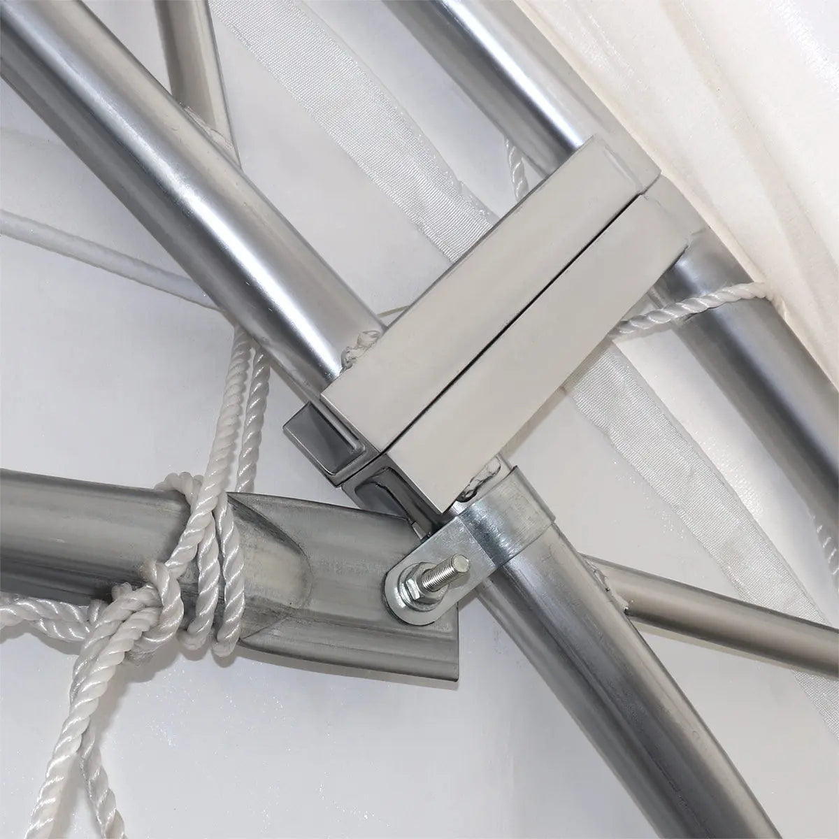 Made of strong, heavy-duty commercial grade polyvinyl chloride (PVC) fabric that is triple layered to prevent tearing and provide a long-lasting shelter covering for many years to come. This fabric is a natural flame retardant, commonly used in large commercial structures such as sports stadiums and event halls. Double trusses also run throughout the whole interior of the structure which reinforces it for exceptional durability and stability.