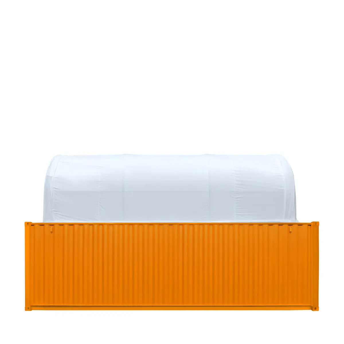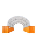 Roughly 30' of entry and exit space on both end walls provides a huge opening to allow workflow coming in and out. This structure is designed for installation on the outer or inner edges of your containers. For harsh weather areas or places with insufficient space, it's recommended to use the outer edges of the container (so it is fully enclosed) to prevent snow buildup outside the structure.