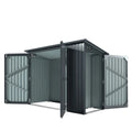 Built in air vents help to maintain steady airflow, preventing overheating and allowing the escape of fumes or odours from garden products. Front swinging doors for large item access and a separate side closet for smaller tools creates a versatile and protective storage solution(the side door can only be installed as shown on the picture).