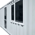 The 40' heavy-duty galvanized steel frame is durable and strong, ensuring a safe and secure workspace. Inside, you'll find a thoughtfully designed layout that includes environmentally friendly wood grain wallboard, PVC flooring, and robust doors with aluminum frames and triple-layer glazed tempered glass windows. The horizontal pivoting windows allow for ventilation even on rainy days, and its high-density foam insulation guarantees optimal temperature control, making it suitable for any location and climate.