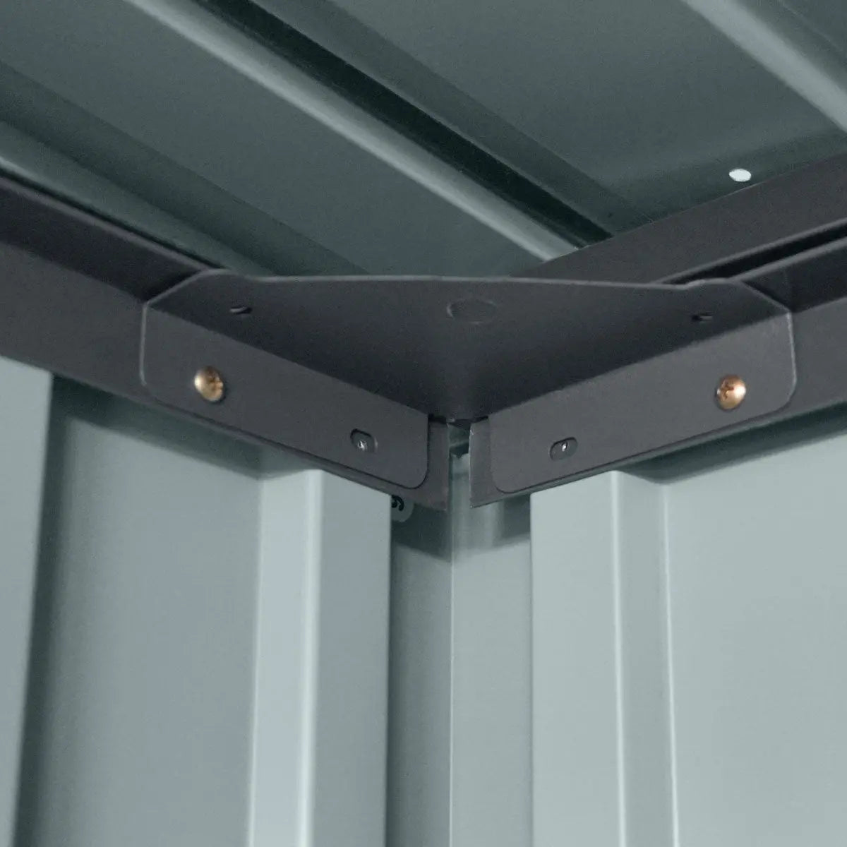 Galvanized corrugated metal sheet panels are highly resistant to water and sun exposure making this shed durable and long lasting. The apex roof design also allows rain and snow build up to easily slide off the structure preventing collapse and damage.