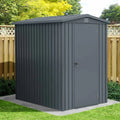 The TMG-MS0506 Apex Roof Metal Shed is a compact and multi-use storage solution for any backyard or garden. Store your mulch, fertilizer, hand tools, buckets and other gardening equipment for easy access and secure weatherproof protection.