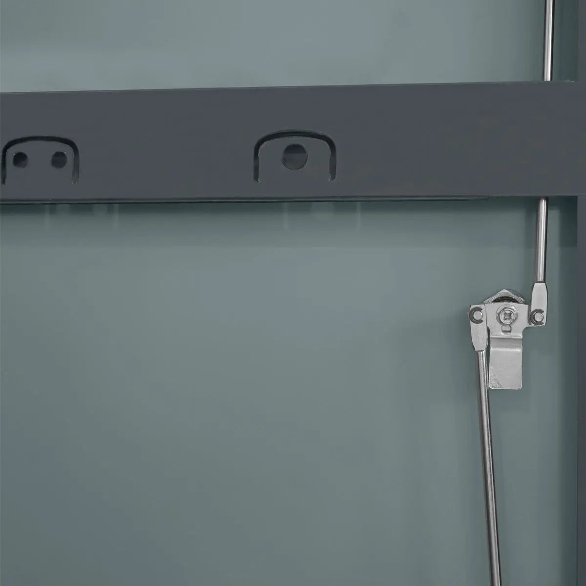 Built in air vents help to maintain steady airflow, preventing overheating and allowing the escape of fumes or odours from garden products. A strong, front door entry and latch design can be padlocked to protect your belongings, keeping them safe and ready to use when you need them.