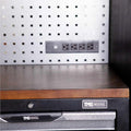 Equipped with pegboards on the interior of each cabinet door as well as a 14 panel pegboard backdrop. Drawers come with 100 lb/300 lb capacity and individual locking mechanism for the protection of valuable tool and parts inventory. This tool chest is designed for high-traffic commercial use and is built to last no matter what environment it is placed in.