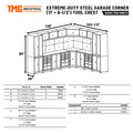 Extreme-Duty Steel Garage Corner (11’ + 8.5’) Tool Chest w/Pegboard, Power Outlets, USB Port, Magnetic Motion LED Lamps, TMG-WBM15