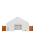 Pro Series 50' x 40' Fully Enclosed Dual Truss Container Shelter with Heavy Duty 32 oz PVC Cover, Front Wall and Back Wall, TMG-DT5040CG