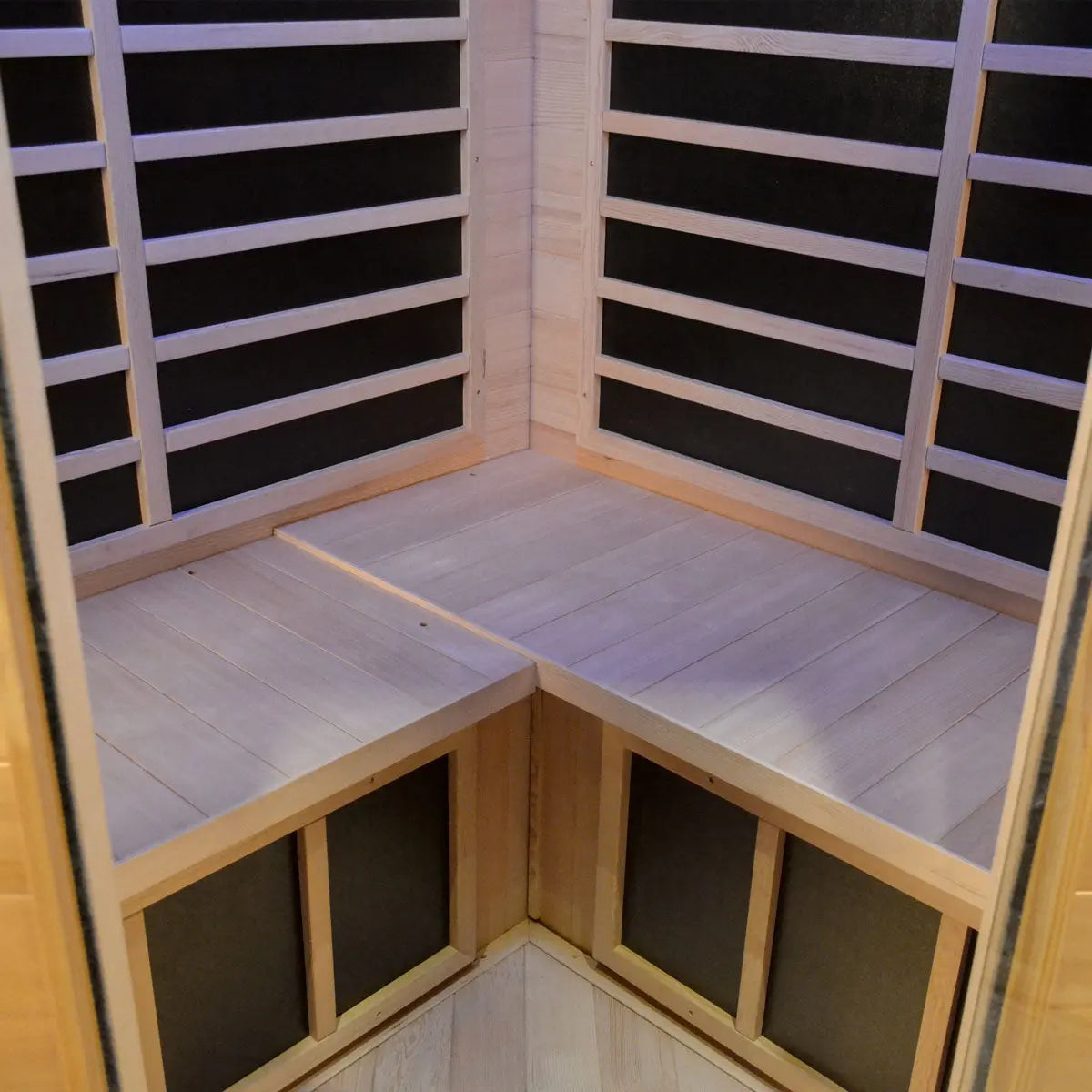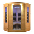 TMG LIVING 3 Person Corner Indoor FAR Infrared Sauna Room, Natural Canadian Hemlock, Bluetooth Speakers, Tempered Glass Door, TMG-LSN40