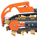 With a side shifting capacity of up to 25-½" and a maximum 36" trenching depth, this trencher is built to finish even your toughest, most hard to reach jobs. A combination of wear-resistant earth and tungsten teeth chew through any type of dry, rugged or rocky ground conditions with ease. This attachment pays for itself in no time by saving on time and labour costs.