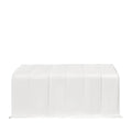 Made of strong, heavy-duty commercial grade polyvinyl chloride (PVC) fabric that is triple layered to prevent tearing. The first 13' of each side is a straight wall which amplifies storage space along the edges, and an enclosed rear wall and front fabric roll-up door helps protect your motorhome from being exposed during harsh weather.