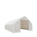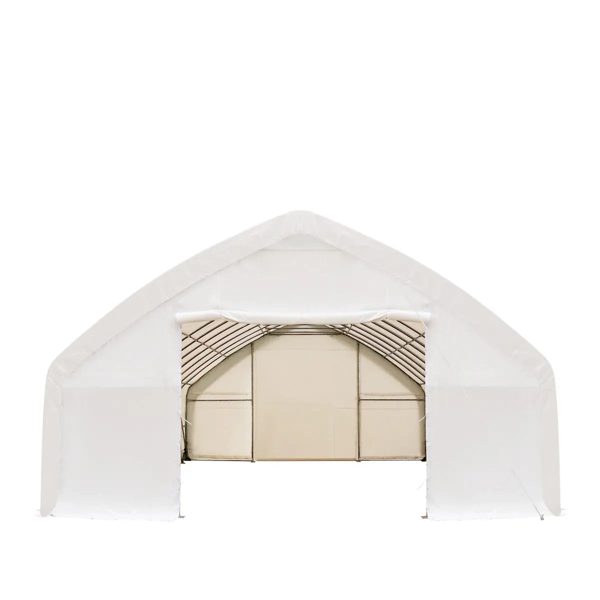 Roughly 13' of entry and exit space on both endwalls provides a huge opening to allow workflow coming in and out. Use this shelter as storage for tools, large equipment, ongoing jobs, maintenance, and mechanical labour. The PE fabric has a self-cleaning quality and comes in a vibrant white colour that reflects UV rays and makes any location it occupies look sharp, neat and professional.