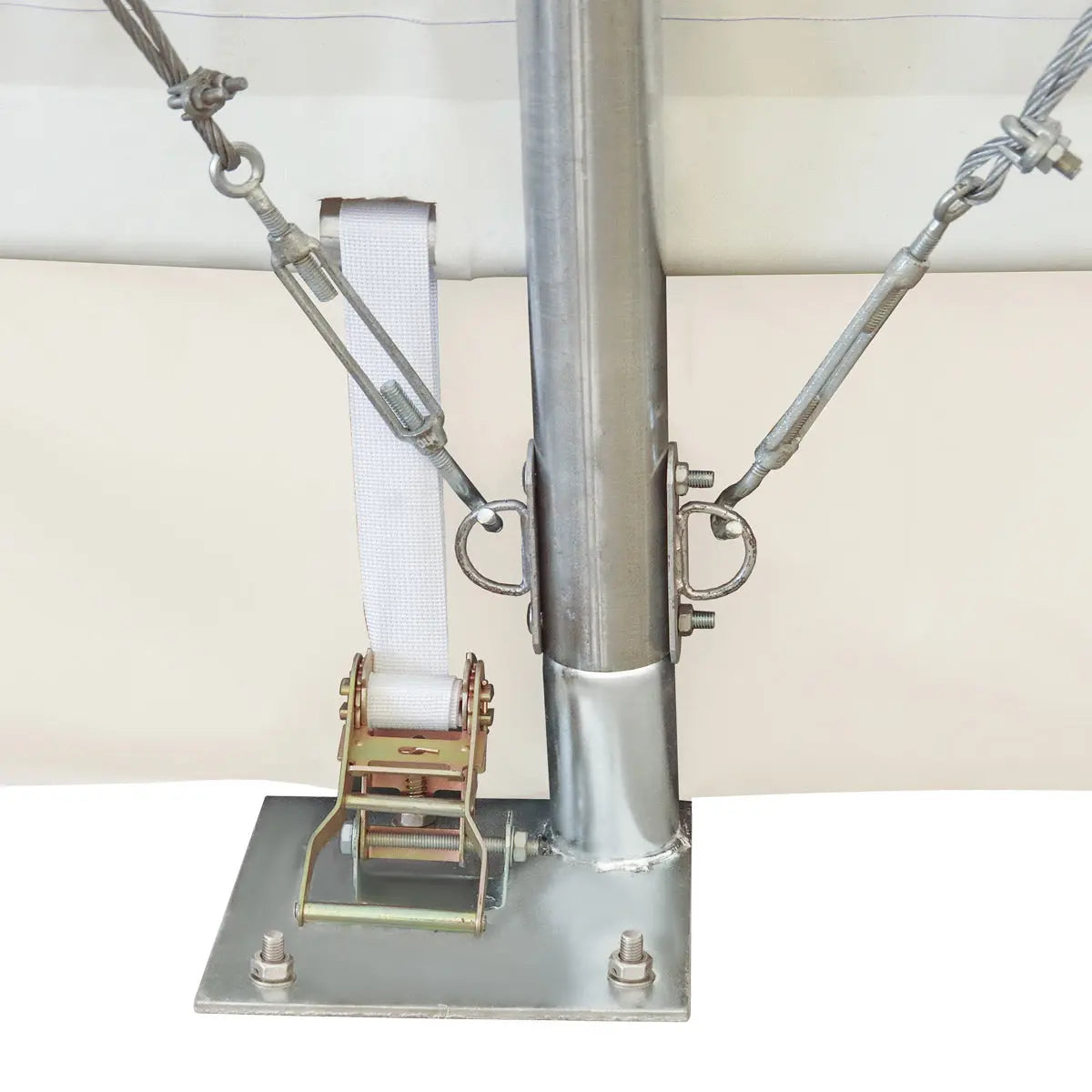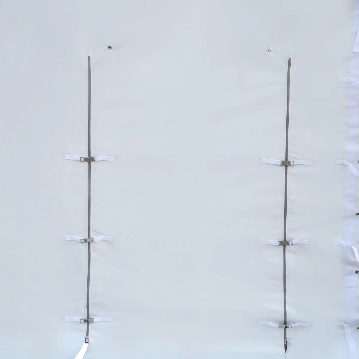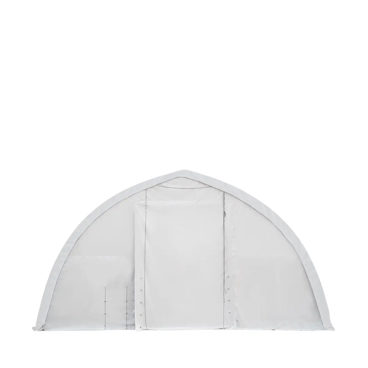 The TMG Industrial 40 x 60 ft Peak Ceiling Storage Shelter features a heavy-duty 17 oz PVC fabric cover that is treated to be fire retardant, UV resistant, and water-resistant. The peak style structure is made of commercial-grade galvanized steel tubes that are designed to be long-lasting and relatively easy to assemble. A dirt skirt along both long sides helps protect against crosswinds, giving this shelter increased durability. Both ends feature a door with an opening 13 ft wide by 16 ft high. This shelter is great for cars, SUVs, boats, and ATVs, as a small shop, for storing farm equipment, and much more.