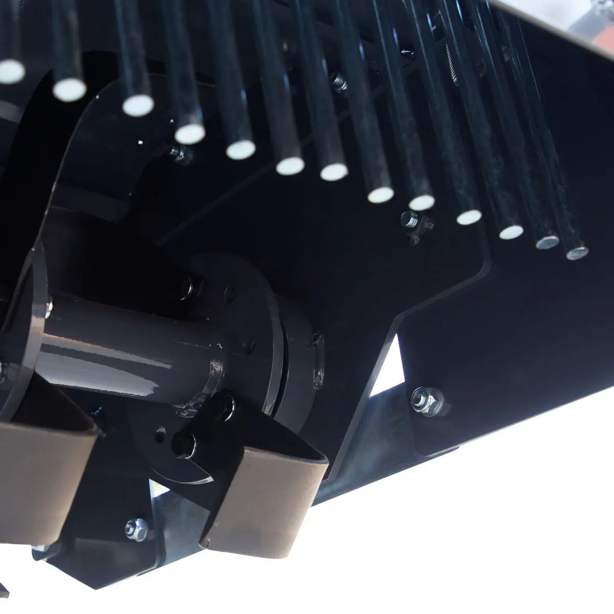 Compatible with 35-60 HP tractors, this stone burier comes complete with a Category 1 or 2, 3-point hitch hookup and PTO driveline shaft that easily attaches to your tractor. This provides efficient energy transfer directly from the machine and has a rotary speed of 540 RPM. 32 heavy-duty tines powerfully dig into the ground with the help of 9 rotary flanges at a low speed of 208 RPM that ensures a thorough reworking of the land after just one pass.