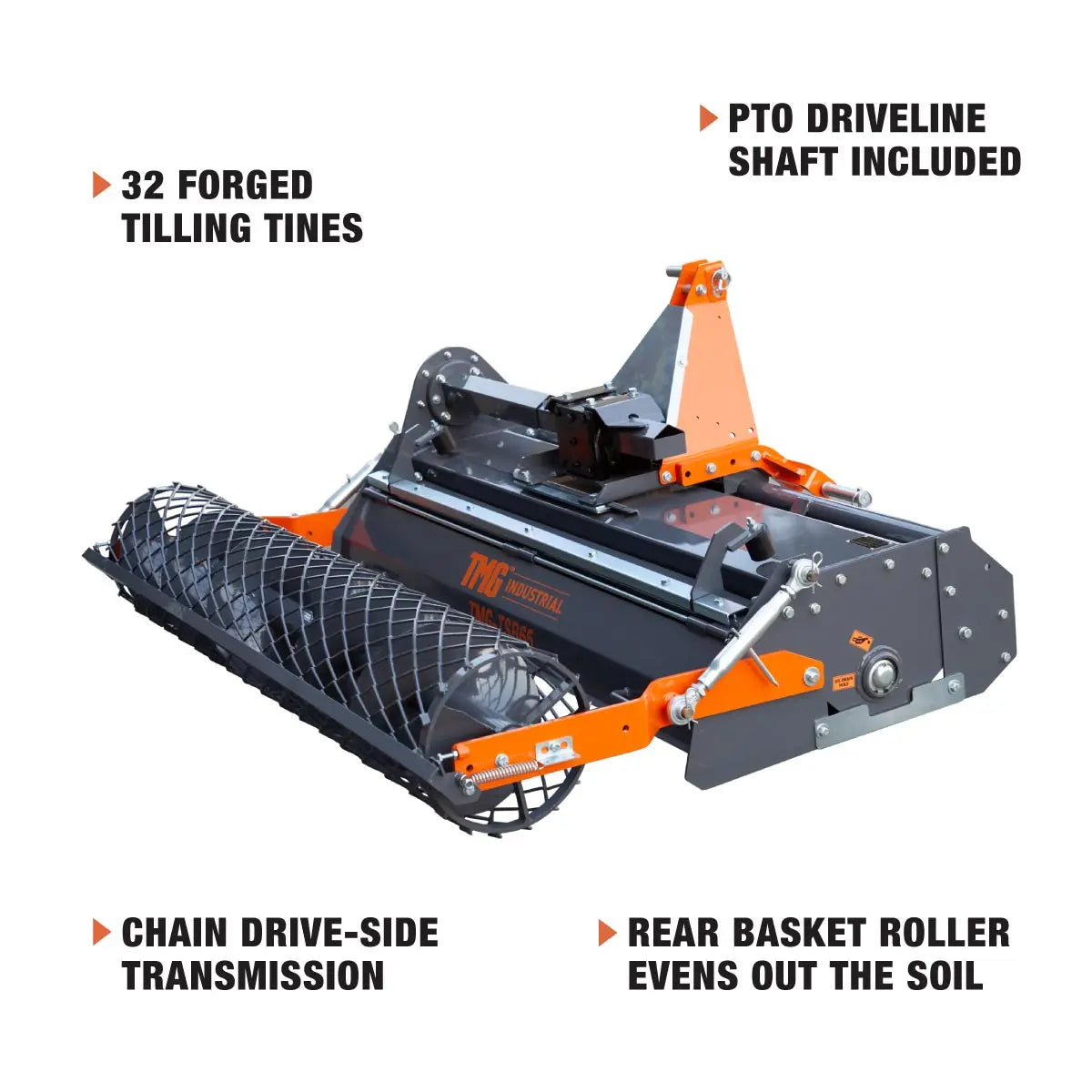 The TMG-TSB65 Stone Burier & Rotary Tiller has been designed to efficiently prepare your seed bed, nursery, sod farm, garden plot or other landscaping area with a clean, fine-soiled finish. Capable of burying stones and other debris up to 6" deep, leaving fresh, organic earth layered on top for prime seeding grounds and superior growing potential.