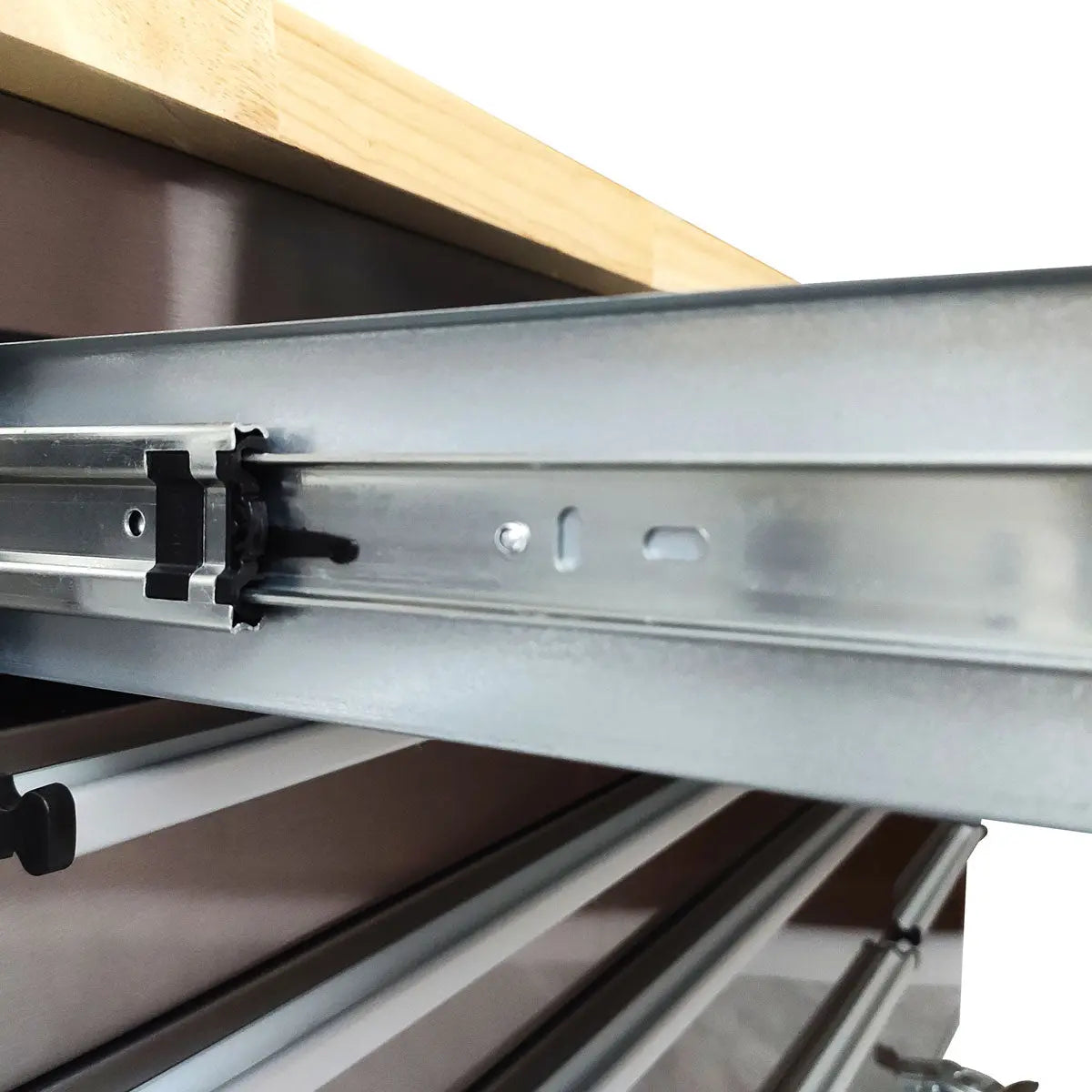 Also includes a full-length pegboard, drawer handles and pre-cut inner drawer liners to protect the bottom surfaces from scratch and wear. Complete organization, work space and secure storage for your hardware, parts and tools.