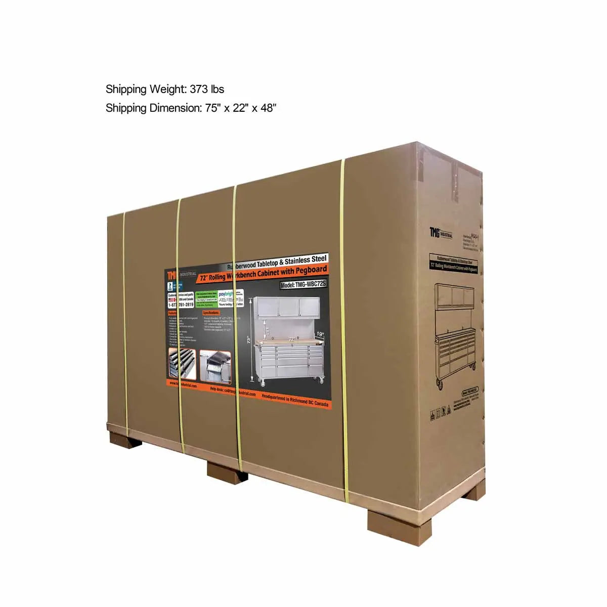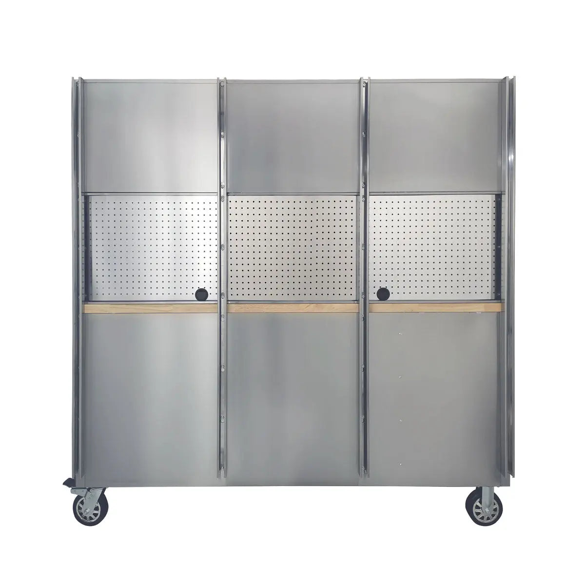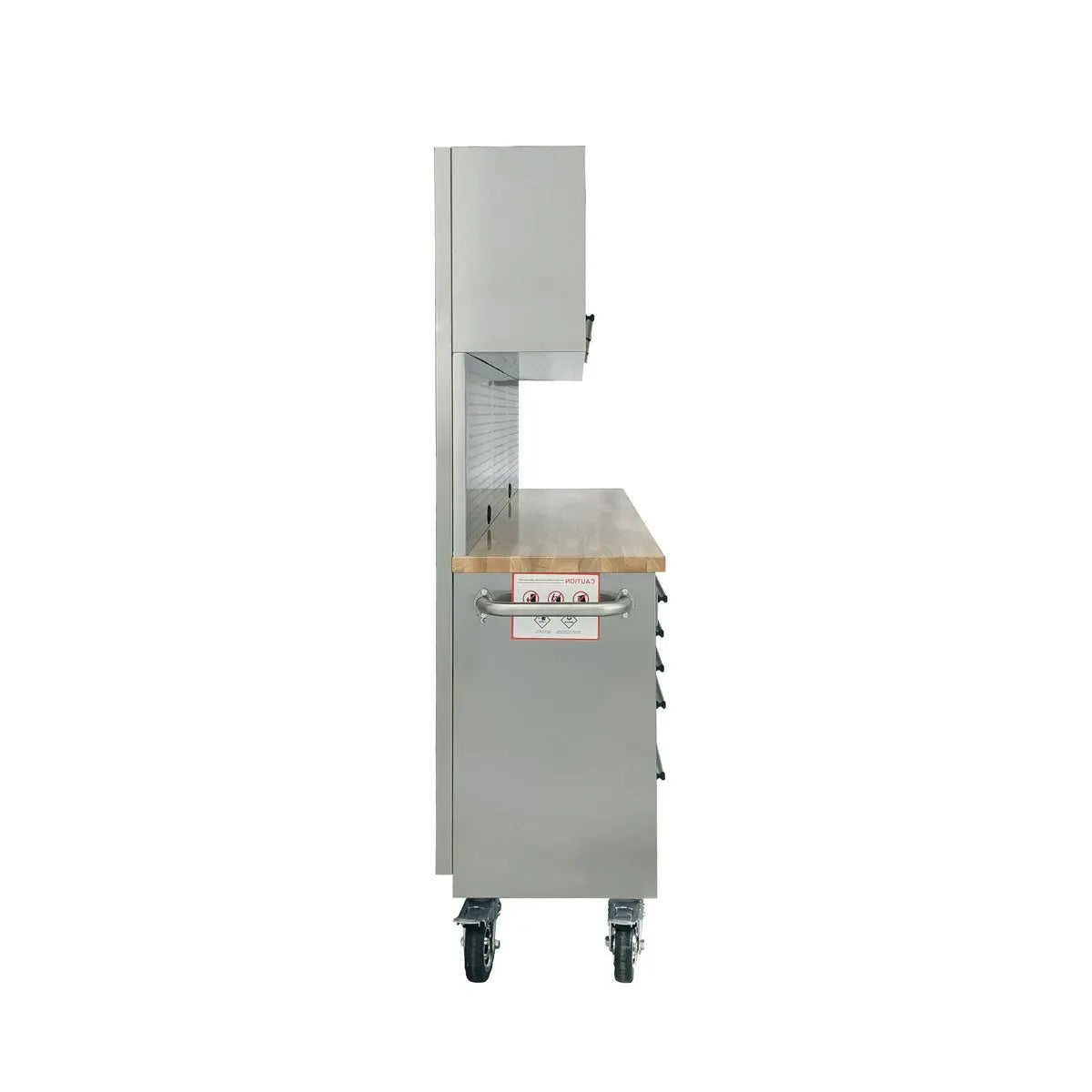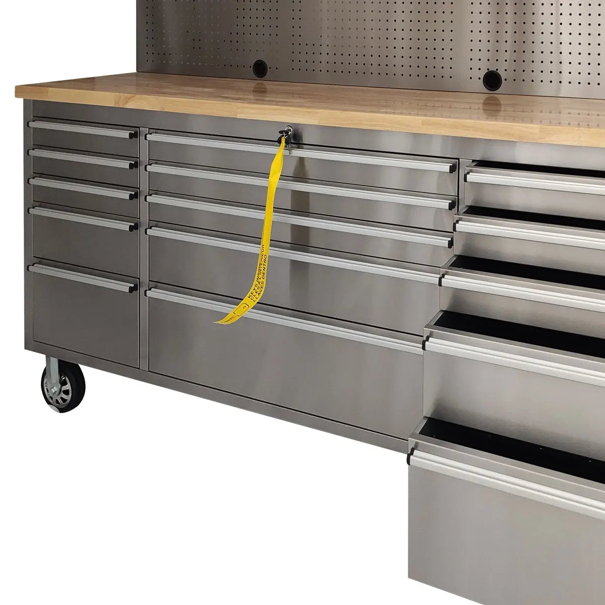 Stainless Steel 72" Rolling Workbench Cabinet Combo, 15 Lockable Drawers, Wall-Mounted Cabinets, Pegboard, Adjustable Shelving, TMG-WBC72S