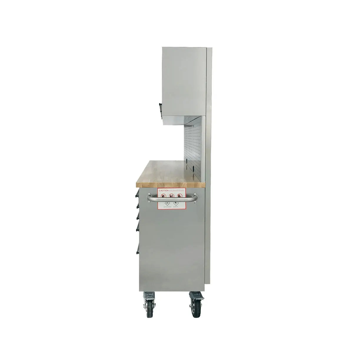 The TMG-WBC72S Stainless Steel 72" Rolling Workbench is a versatile, commercial grade storage and work surface solution for your garage, repair shop, automotive business and any other industrial setting. It has a durable, fully welded frame with a powder coated finish and long lasting stainless steel tabletop, all built with quality, aesthetic and performance in mind.