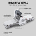 Efficient and Secure: Equipped with a high-quality, powerful motor, this dough sheeter quickly creates puff pastries and easily handles various culinary tasks. The thickened stainless steel construction ensures it maintains shape even after prolonged use. The protective mesh cover and large rubber feet design guarantee stability and secure during operation.