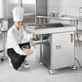 Easy to Move: The meat grinder features 4 mobile wheels, with 2 equipped with brakes, allowing you to effortlessly move the machine to any location. It is particularly suitable for use in butcher shops, supermarkets, fast-food restaurants, hotels, and food processing facilities.