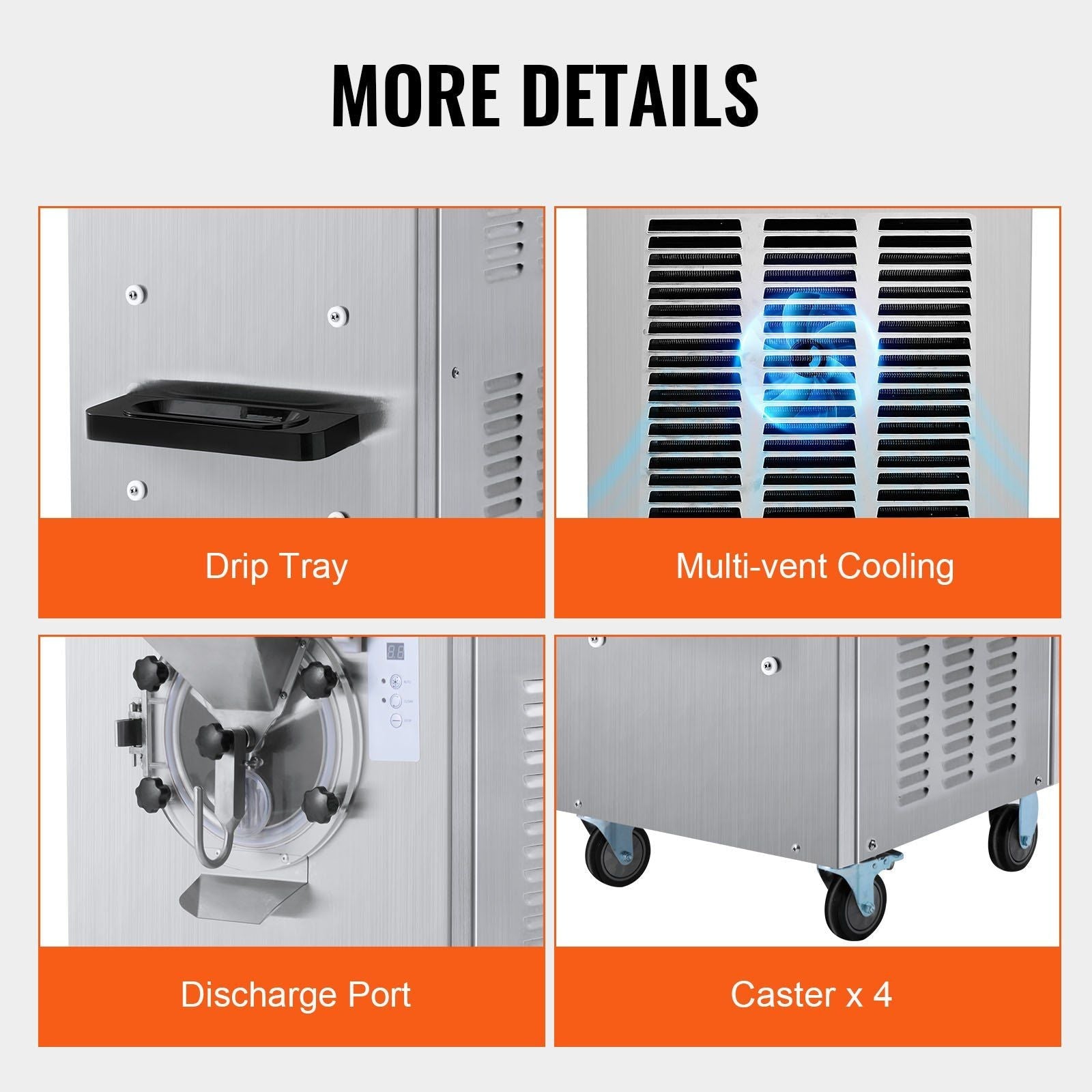 VEVOR Commercial Ice Cream Machine, 20-25L/H Yield, 2400W 1-Flavor Hard Serve Ice Cream Maker, 8L Stainless Steel Cylinder, Digital Display Auto Clean Adjustable Hardness, for Restaurant Snack Bars