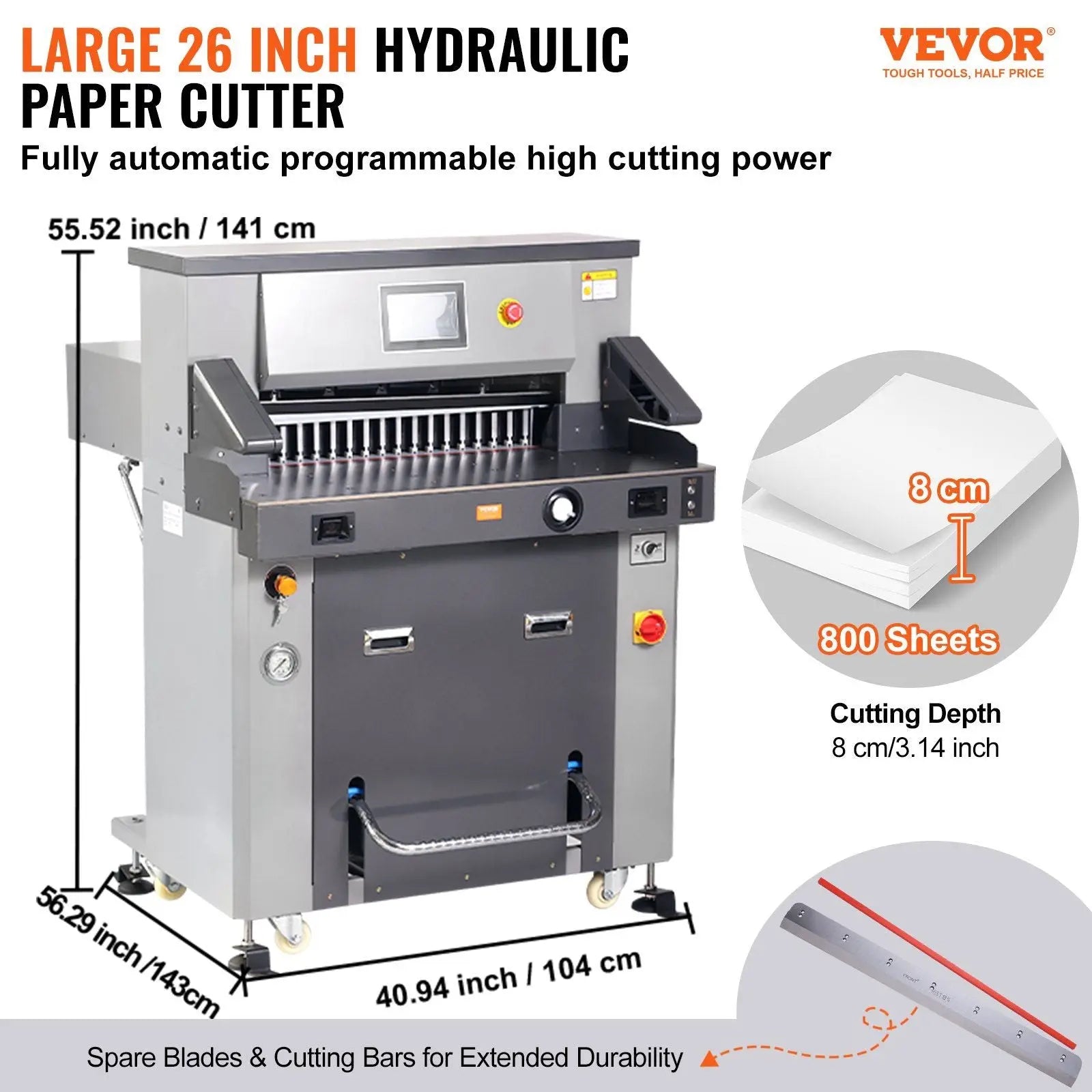 26" Electric Hydraulic Paper Cutter, 3.14" Cutting Thickness, 7" Touchscreen Control, Heavy-Duty Design, DOBA-EPC26
