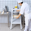 This electric dough divider can divide large batches of dough into 40 uniform portions, each ranging from 30 to 140 grams (1.06 to 4.94 oz), ensuring consistent size and weight while preventing sticking. Designed for convenience, it includes two 304 stainless steel trays that can be used alternately, with one side featuring a handle for easy removal. Measuring 12.2" × 2.8" (310 × 71 mm), these trays allow smooth operation by a single person, greatly improving efficiency. Built from high-quality materials, the machine features 304 stainless steel cutting blades and pressing plates that deliver precise, clean cuts and easy maintenance. The extended lever with a textured grip reduces manual effort and improves handling comfort. Ideal for commercial use, this dough divider is perfect for preparing pastries, pizzas, cookies, burgers, and bread in bakeries, restaurants, schools, and food production facilities.