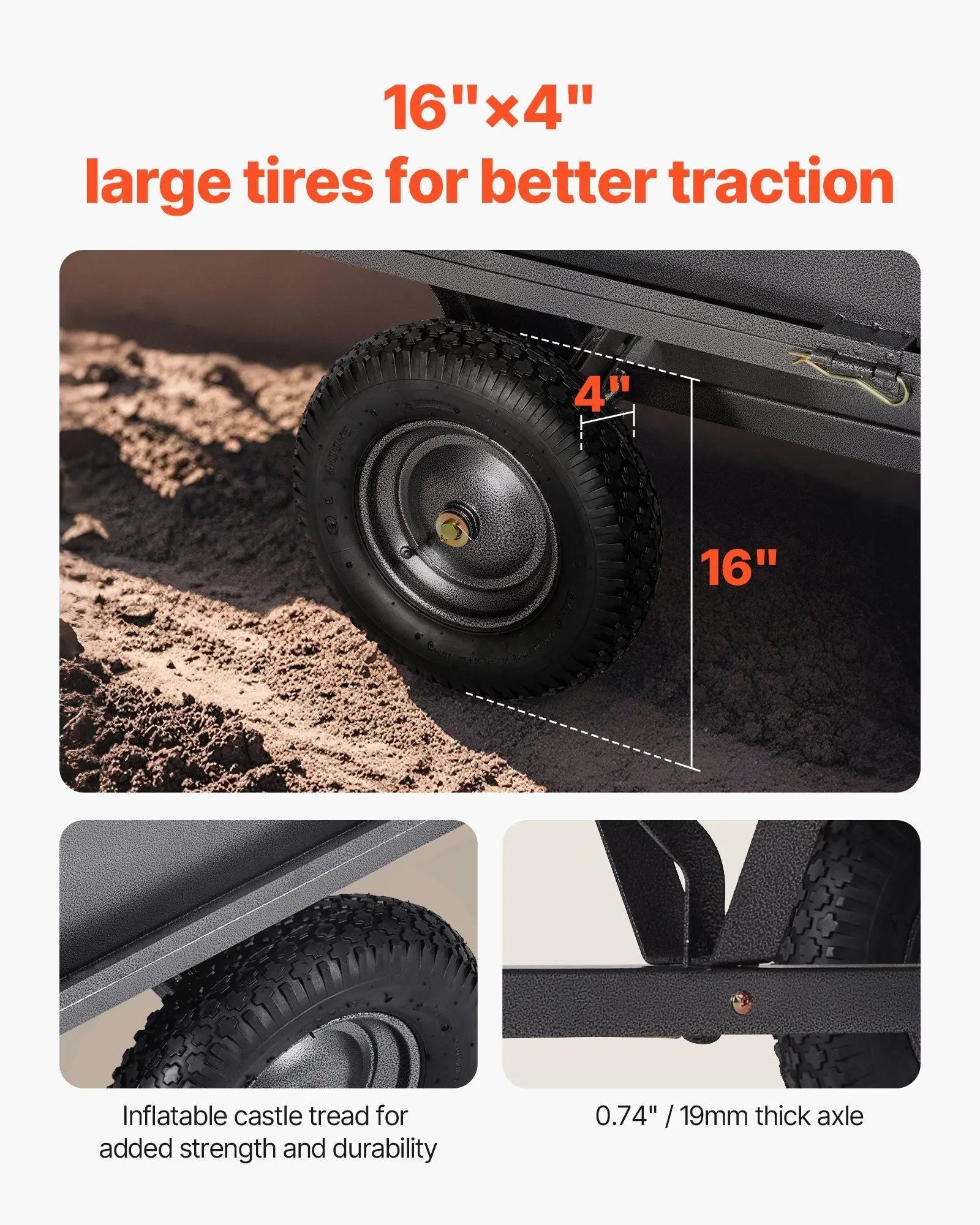 600 lbs Steel Dump Cart, 17 Cu. Ft Capacity, Heavy-Duty Tow Behind for ATV/UTV, DOBA-DC600
