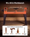 16 x 40 in Workbench: With a 16 x 40 in (406 x 1020 mm) work area, this wood lathe machine is suitable for handling medium to large projects such as table legs, canes, tall vases, and furniture components